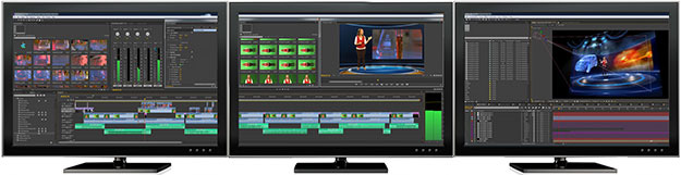 AMD Eyefinity multi-display technology enables an AMD FirePro graphics card to drive three, four and even six monitors via DisplayPort 1.2 from a single graphics card, at up to 4Kx2K resolution for each output. Speed up your workflow by using your extra screens to view additional Audio Mixer or Metadata panels, run After Effects, Photoshop sessions simultaneously or simply refer to your storyboards and project brief.