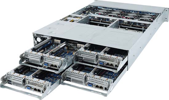 2U Quad Node, 24x 2.5" NVMe/SATA Hot-swappable SSD Drive Bays, 8x M.2 with PCIe Gen3 x4 interface, 8x Low profile PCIe x16 Expansion Slots, 8x 1Gb/s LAN ports (Intel® I350-AM2)